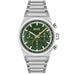Green Chronograph Dial – Three subdials for seconds, minutes, and 24-hour format.