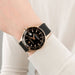 Striking and refined, this Maserati men's watch features a rose gold-tone stainless steel case paired with a sleek black rubber strap for ultimate comfort and durability. The bold black dial is accented with luminous rose gold hour markers and hands, a date window at 3 o'clock, and the Maserati trident emblem at 12 o'clock. With automatic movement and 100-meter water resistance, this timepiece blends luxury design with everyday functionality and sporty elegance.