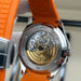 Transparent Exhibition Caseback – View the detailed rotor and movement engraving.