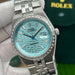 Dial: Turquoise blue with a 3D honeycomb pattern and luminous baton indices (aftermarket/custom dial)