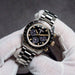 Dial: Black with gold accents, three subdials (chronograph minutes, 24-hour display, running seconds)