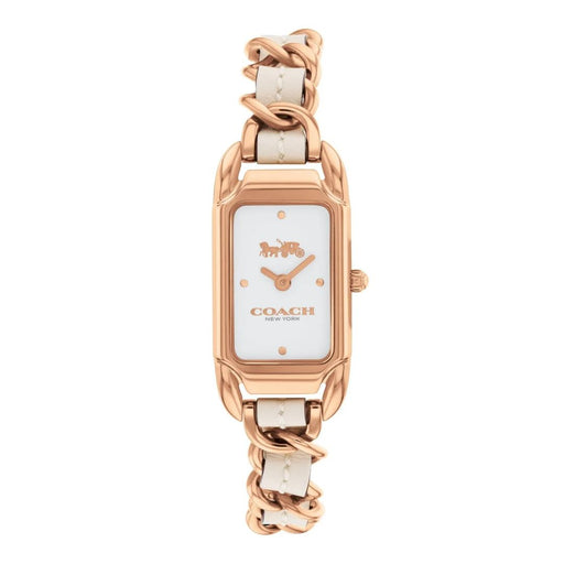 Coach Rectangular Rose Gold Women’s Watch with White Dial & Chain Leather Bracelet 14504283 - Authentic