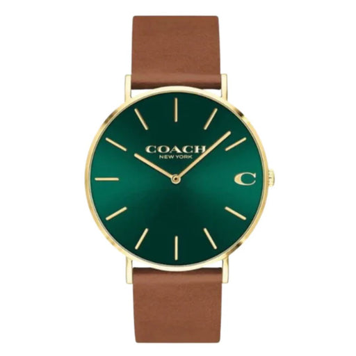 Coach Men’s Classic Minimal Watch – Green Dial, Gold Case, Brown Leather Strap 14602435 - Authentic