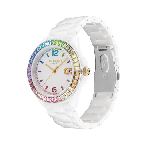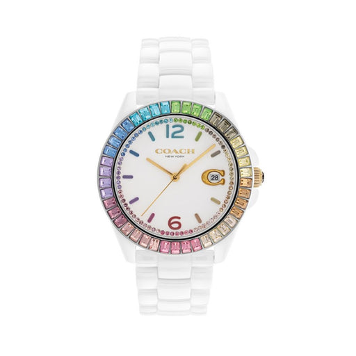 Coach New York White Women’s Watch – Rainbow Crystal Bezel & Date Display 14504019 - Authentic