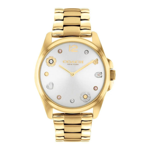 Coach New York Gold Women’s Watch – White Dial with Floral & Heart Details 14504349 - Authentic