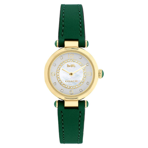 Coach Women’s Gold-Tone Quartz Watch – Green Leather Strap with Crystal Bezel 14503894 - Authentic