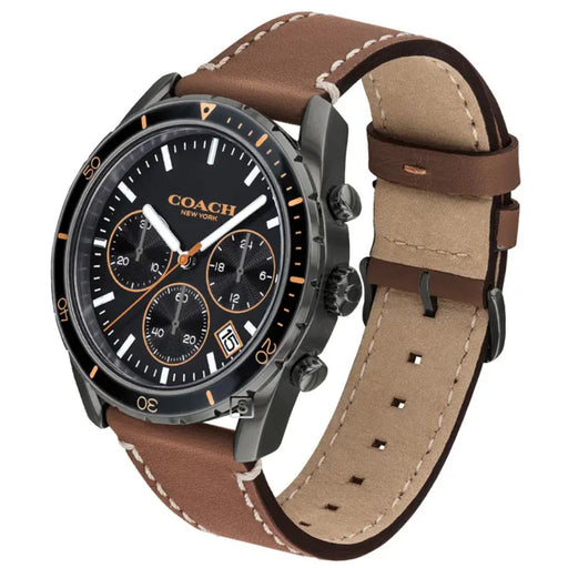 Coach Chronograph Watch – Black Stainless Steel Case & Brown Leather Strap 14602410 - Authentic