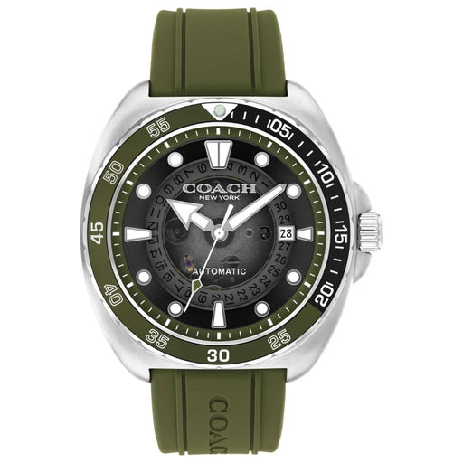 Coach Automatic Diver Watch 44MM – Green Silicone Strap & Stainless Steel Case 14602717 - Authentic