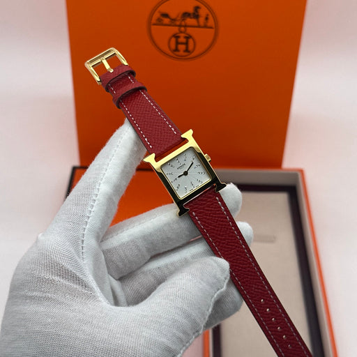 Hermes Heure H Gold Stress Dial With Bordo Leather Strap Watch