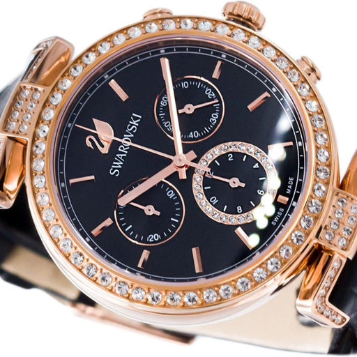 Swarovski Crystalline Delight Chronograph Black Leather Watch - 5295320 - Authentic