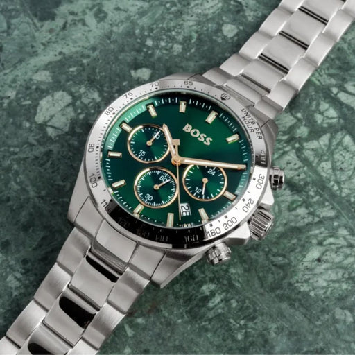 Hugo Boss Men’s Tachymeter Chronograph Watch Green Dial & Gold Accents | 1514217 - Authentic