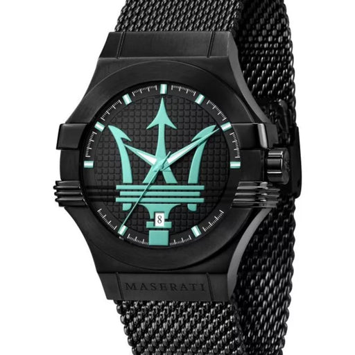 Maserati R8853144002 - Potenza Men's Black Watch with Aqua Trident Dial - Authentic