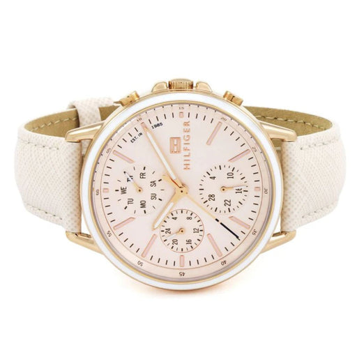 Tommy Hilfiger Chronograph White Dial Gold Case & White Leather 1781789 - Authentic