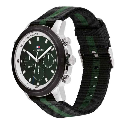Tommy Hilfiger Chronograph Green Dial Black & Green Fabric Strap 1792107 - Authentic