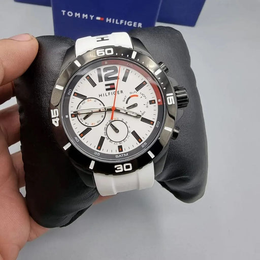 Tommy Hilfiger Chronograph White Dial Black Bezel & White Rubber Strap 1791146 - Authentic