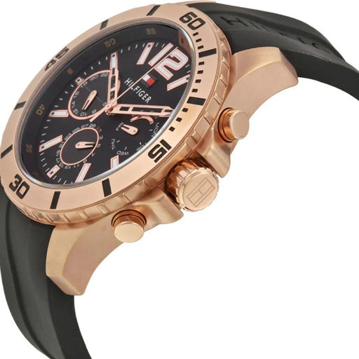 Tommy Hilfiger Chronograph Black Dial Rose Gold Case & Black Rubber 1791145 - Authentic