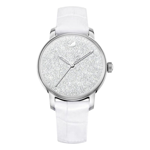 Swarovski Crystal Dial Watch – White Leather Strap, Swiss Made 5295383 - Authentic