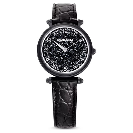 Swarovski Black Crystal Dial Leather Strap Watch – Swiss Made 5664311 - Authentic