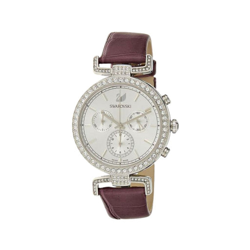 Swarovski Crystal Chronograph Women’s Watch – Burgundy Leather Strap 5296835 - Authentic