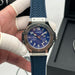 Deep blue textured dial with luminous hands & numerals