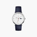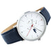 The Lacoste Moon Multifunction watch features a clean and modern design with a white dial, slim indices, and a red seconds hand for contrast. It comes with a navy blue leather strap, a stainless steel case, and multifunction subdials for day, date, and 24-hour display. Perfect for a minimalist yet sporty look that matches both casual and business outfits.