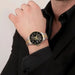 The Maserati Successo R8853140009 stands out with its bold design and luxurious two-tone finish. Featuring a black sunray dial dominated by the iconic Maserati Trident in gold, this watch merges heritage style with contemporary flair. Roman numeral hour markers and a date display at 3 o’clock offer both function and elegance. Finished with a gold-accented unidirectional bezel and a stainless steel bracelet with gold-tone center links, it's a statement timepiece made for distinction