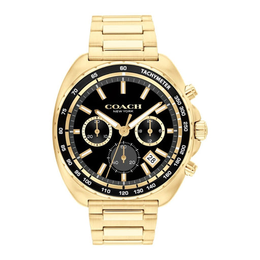 Coach Men’s Gold-Tone Chronograph Watch with Black Dial & Tachymeter 14602703 - Authentic