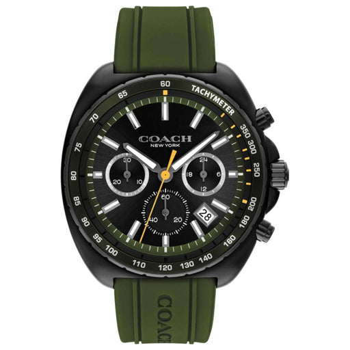 Coach Men’s Chronograph Watch – Black Case & Dial with Green Rubber Strap 14602707 - Authentic