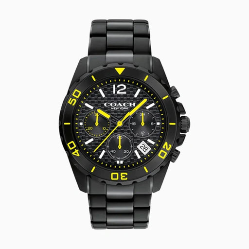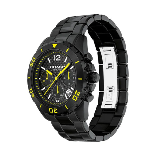 Coach Men’s Chronograph Watch – Black Stainless Steel with Yellow Accents 14602563 - Authentic