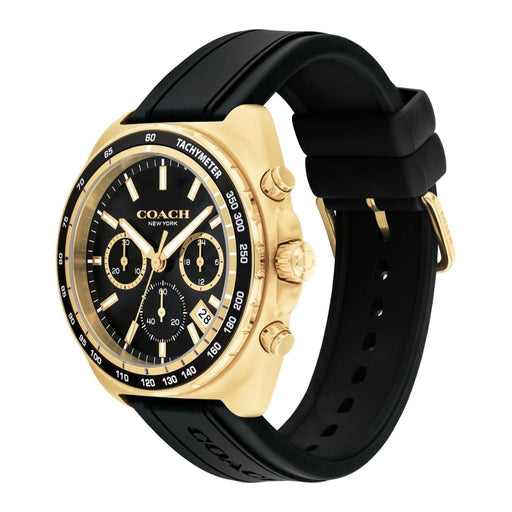 Coach Men’s Chronograph Watch – Gold-Tone Case, Black Dial & Black Rubber Strap 14602708 - Authentic