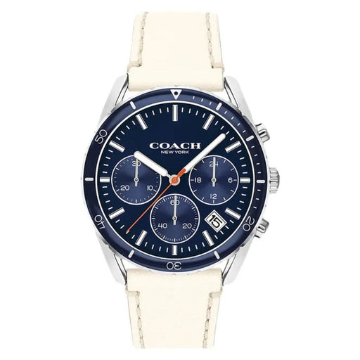 Coach Men’s Chronograph Watch – Blue Dial, White Leather Strap 14602411 - Authentic