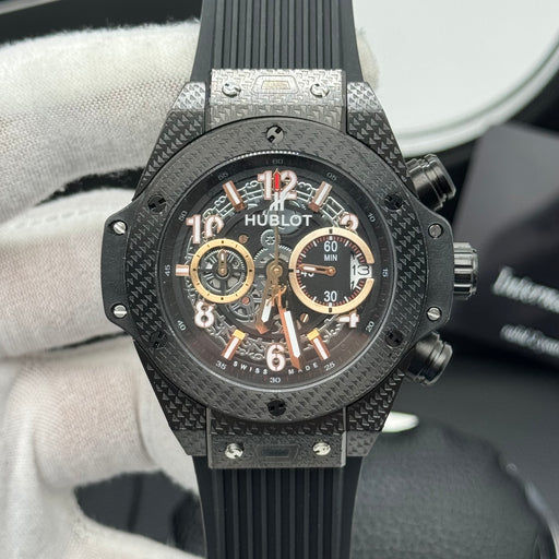 Hublot Big Bang Skeleton Chronograph – Full Black Carbon | Rose Gold Accents & Rubber Strap