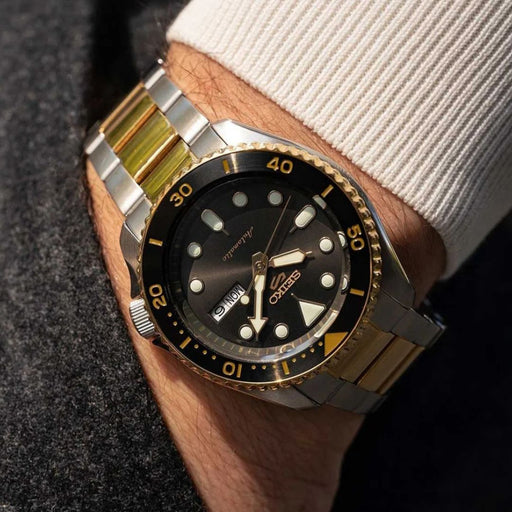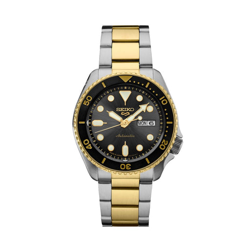 Seiko 5 Sports Automatic Diver Day-Date – Black Dial Two-Tone Gold & Steel SRPK22 - Authentic