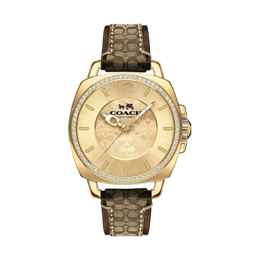 Coach Women’s Gold-Tone Crystal Bezel Watch with Brown Leather Strap 14503150 - Authentic
