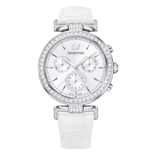 Swarovski Octea Lux Chronograph Women’s Watch – Silver Crystal Bezel & White Leather Strap 5295346 - Authentic
