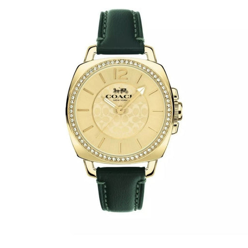 Coach Women’s Gold-Tone Quartz Watch – Green Leather Strap with Crystal Bezel 14503894 - Authentic