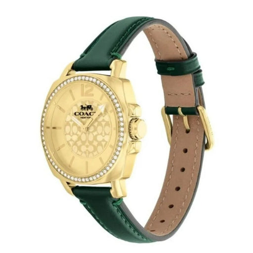 Coach Women’s Gold-Tone Crystal Bezel Watch with Green Leather Strap 14503982 - Authentic