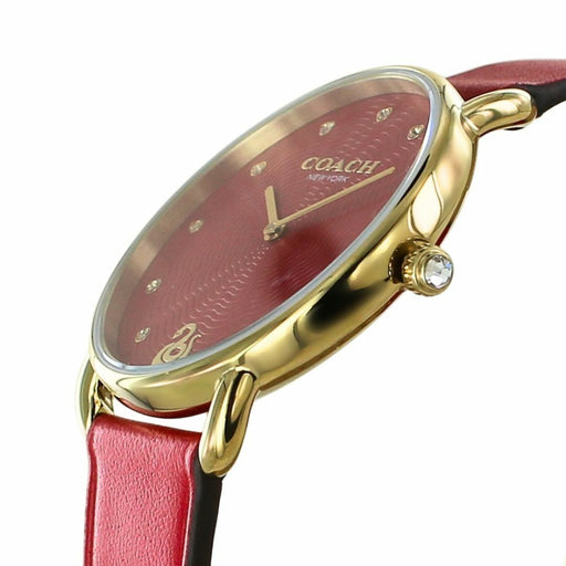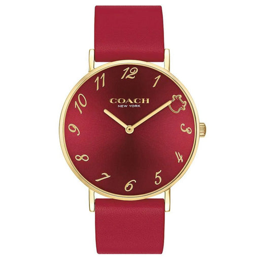 Coach Women’s Minimalist Watch – Burgundy Red Dial, Gold Case, Red Leather Strap 14503722 - Authentic