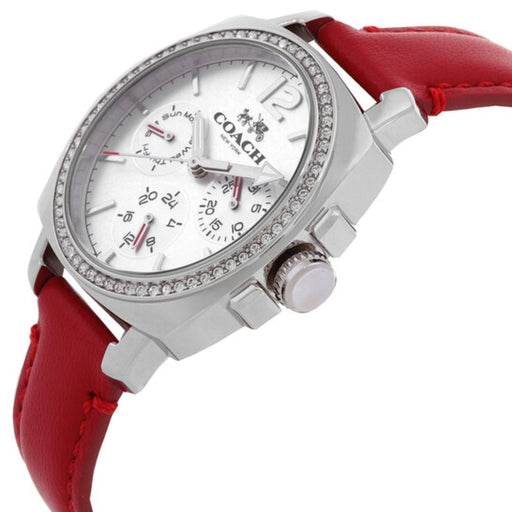 Coach Women’s Crystal Multifunction Watch – Silver Dial, Red Leather Strap 14502171 - Authentic