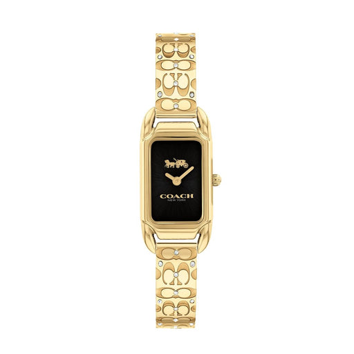 Coach Women’s Rectangular Quartz Black Dial – Gold Tone Bracelet with Crystal Details 14504250 - Authentic