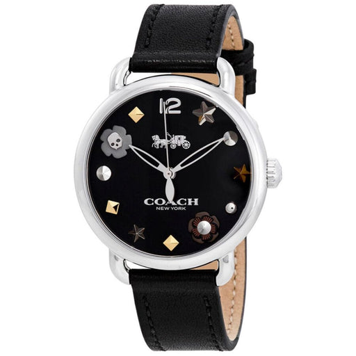 Original price $300.00Original price $300.00 - Original price $300.00Original price $300.00Current price $175.00$175.00 - $175.00Current price $175.00Silver-tone stainless steel case Black dial with decorative metallic accents Coach signature logo on dial Black leather strap with buckle c...