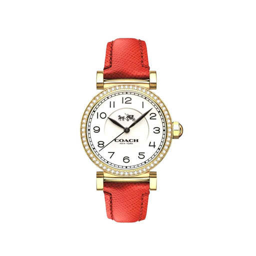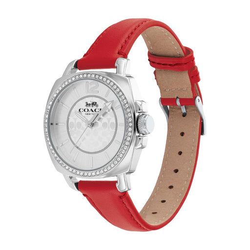Coach Women’s Silver-Tone Crystal Bezel Watch with Red Leather Strap 14503855 - Authentic