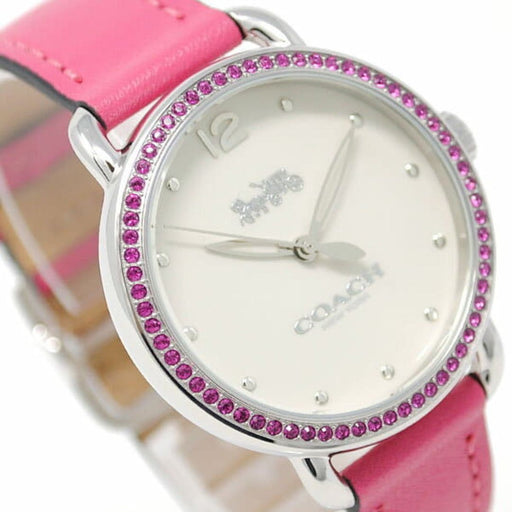 Coach Women’s Silver Quartz Watch – Coral Dial with Crystal Markers 14503536 - Authentic