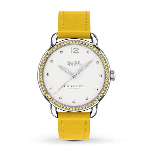 Coach Women’s Silver Watch with Yellow Crystal Bezel & Yellow Leather Strap 14502882 - Authentic