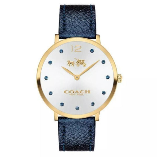 Coach Women’s Silver Quartz Watch – Blue Dial with Crystal Markers & Blue Leather Strap 14503535 - Authentic