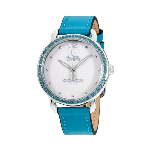 Coach Women’s Silver Watch with Turquoise Crystal Bezel & Blue Leather Strap 14502884 - Authentic