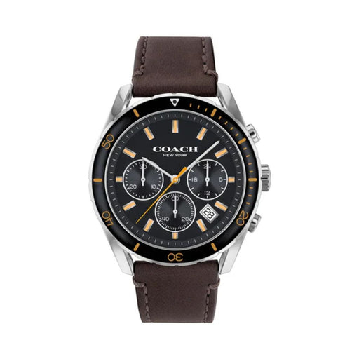 Coach Chronograph Watch – Black Stainless Steel Case & Brown Leather Strap 14602410 - Authentic