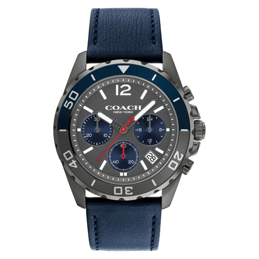 Coach Chronograph Watch – Gunmetal Case with Blue Dial & Blue Leather Strap 14602558 - Authentic