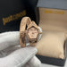 Textured Rose Gold Dial – Subtle patterned design with minimalist hands for easy time reading.