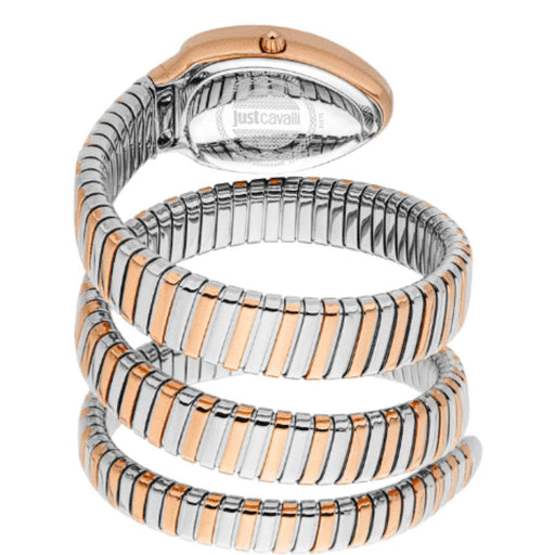 Just Cavalli Women's Rose Gold & Silver Snake Coil Watch – White Textured Dial jc1l249m0065 - Authentic